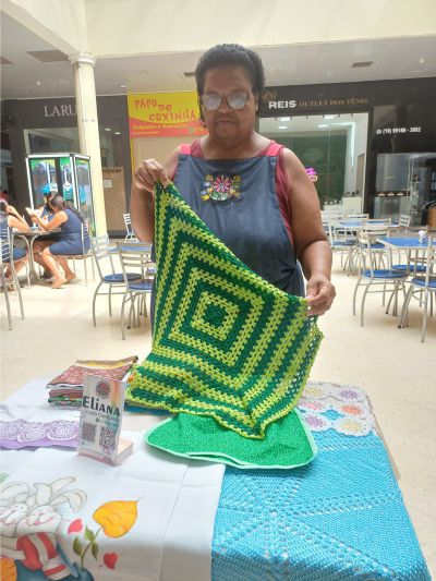 A pessoa sorteada para ganhar uma peça artesanal foi a simpática Alda Paixão que